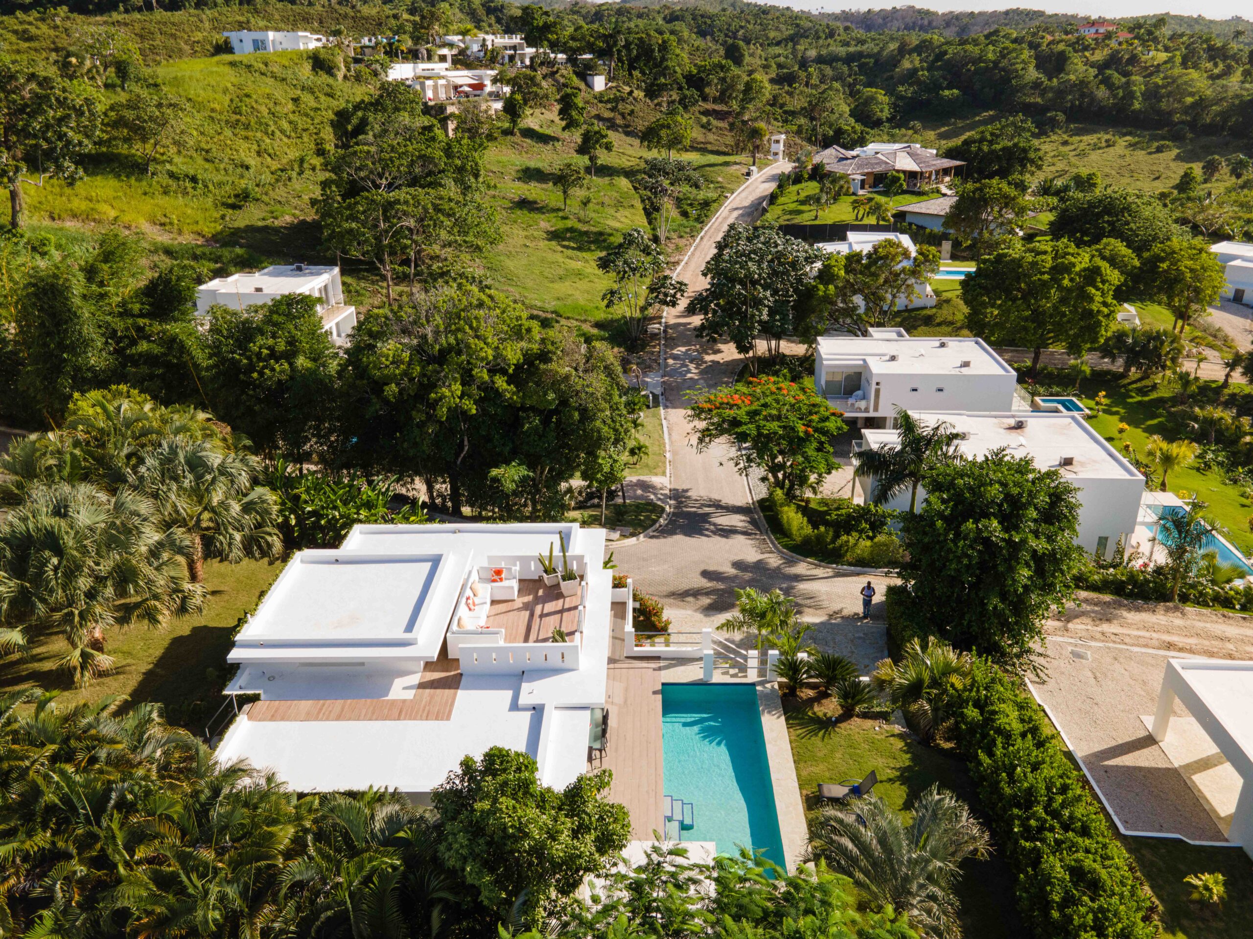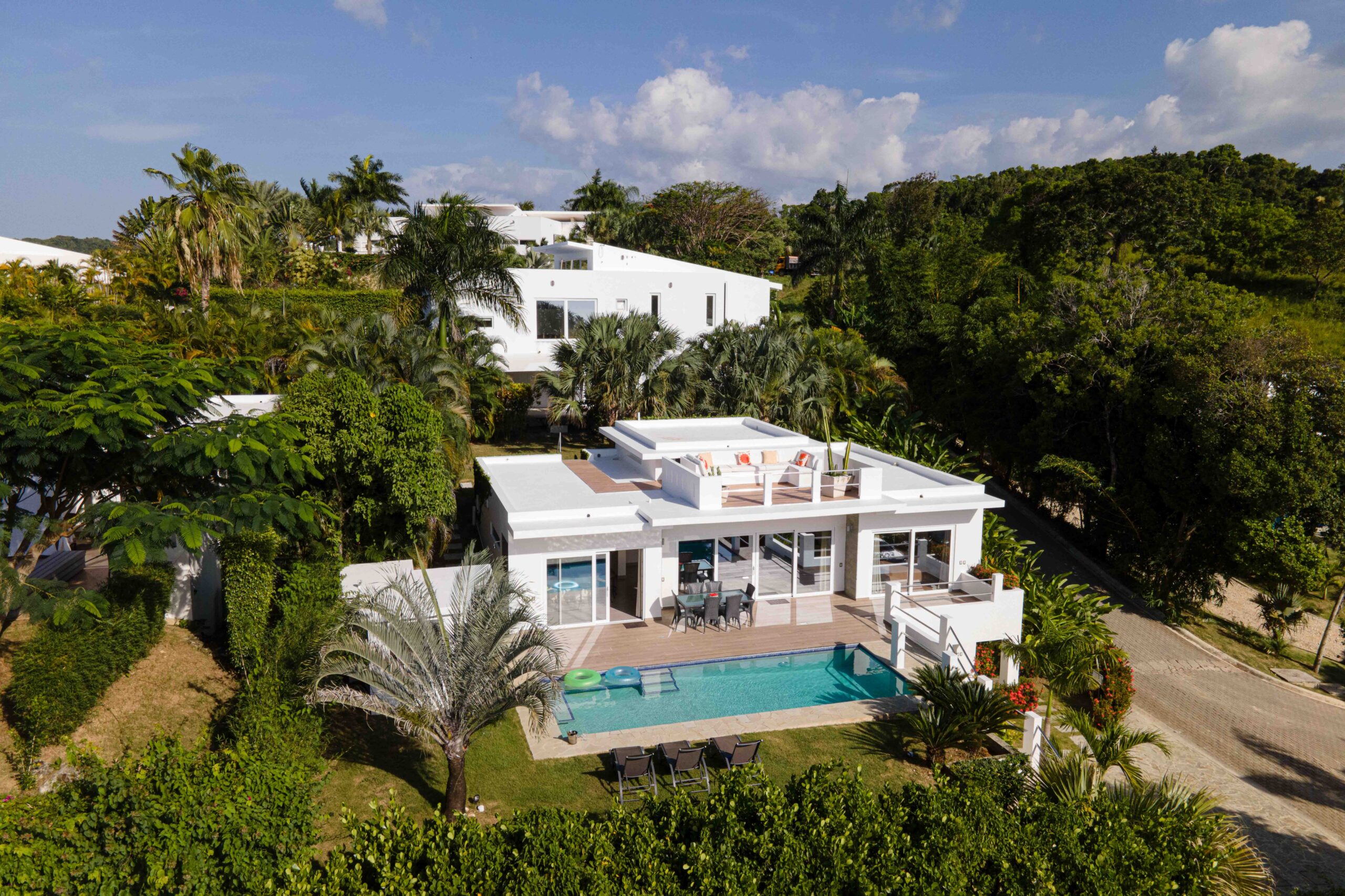 Fabulous modern luxury villa that is in a secluded and secure (24 HR guards) subdivision of similar homes. The pool, view and outdoor areas are so spectacular that we only went to the beach once. This is a great and romantic place for just one couple to relax from a busy schedule in true luxury. It was great having daily housekeeping and the fridge stocked with drinks, snacks and beer. Lots of the local restaurants will deliver food to the villa. Great shrimp in yellow curry at Papi’s in Cabarete on the beach as recommended by Sandrine. Loved the view and modern luxury of the villa and this is a very good place to relax.