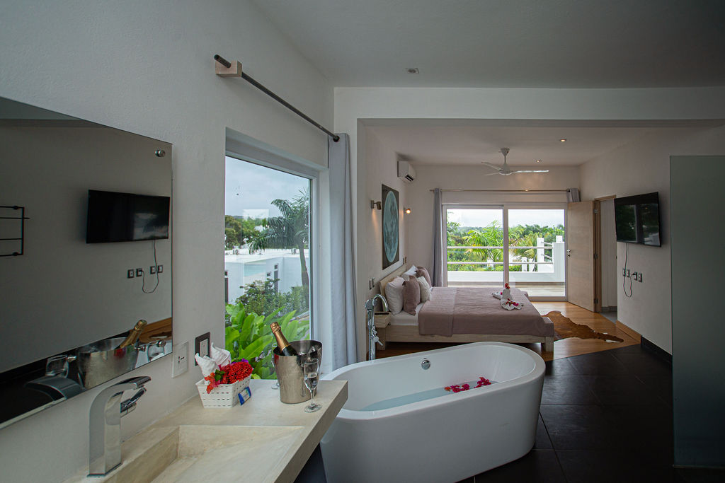 I would have to say it’s one of the most unique and luxurious property you can find. Very well maintained the level of comfort is hard to beat! It was super ultra clean. Everything was in perfect condition. The kitchen is amazing, the bedrooms are very unique and comfortable, the jacuzzi and pool area was just perfect! The decorations and architectural design elements of this property are just superb! The security is excellent and friendly. Sandrine is amazing, she made us feel like home and the communication was PERFECT!