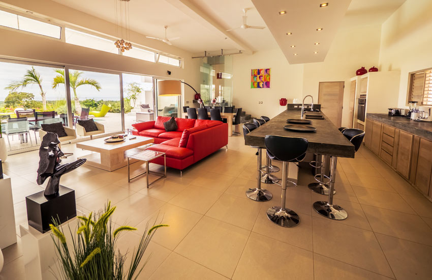 Fabulosa villa de lujo moderno que se encuentra en una subdivisión apartada y segura (guardias de 24 Hs) de hogares similares. La piscina, la vista y las áreas al aire libre son tan espectaculares que solo fuimos a la playa una vez. Este es un lugar genial y romántico para una sola pareja para relajarse de un horario ocupado en verdadero lujo. Fue genial tener servicio de limpieza diario y la nevera equipada con bebidas, aperitivos y cerveza. Muchos de los restaurantes locales entregan comida a la villa. Un gran camarón con curry amarillo en Papi’s en Cabarete en la playa recomendado por Sandrine. Me encantó la vista y el lujo moderno de la villa y este es un muy buen lugar para relajarse.